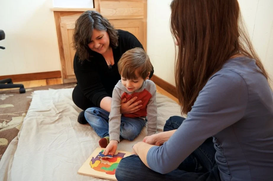 For children 1-5 years, a thick mat is placed on the floor for play with their caregiver while Susie sits behind the child and applies the techniques. Susie has toys. Books and other activities to occupy your child, or you are welcome to bring a familiar toy from home.